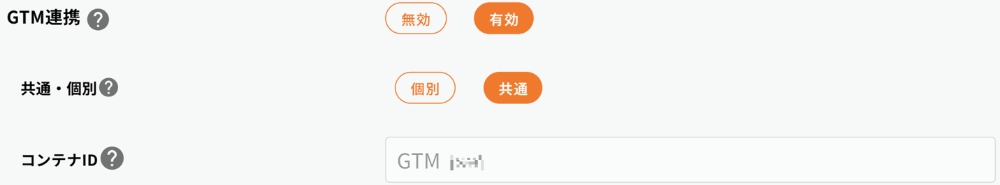 - GTM連携の欄までスクロールし、以下のように設定をします。