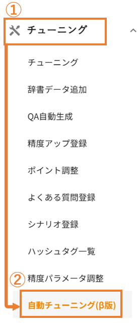 - 「チューニング」→「自動チューニング(β版)」をクリックします。