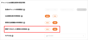 4. 「回答できなかった質問の分析設定」を「有効」に変更します。
