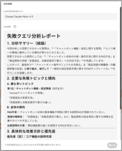 ボタンをクリックすると、「OpenAI gpt-5-nano」を利用して分析が再度実行されます。
