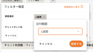 日付範囲を「1週間 / 2週間 / 1ヶ月 / 1年間/カスタム選択」から選択します。