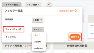 プルダウンメニューから「すべて」または 作成したチャットボット をクリックすると、
