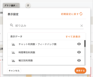 ダッシュボード画面に表示させるグラフの選択ができます。