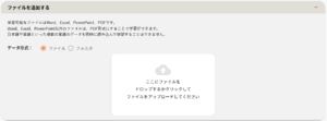 ※分類タグは後から追加することもできます。 - 「学習データ登録」の「ファイルを追加する」から学習するCSVファイルをアップロードします。