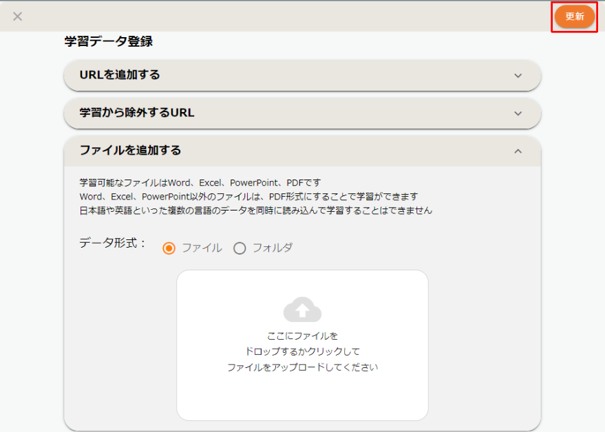 学習されたデータが存在しない場合、ファイルやWebページを追加学習します。