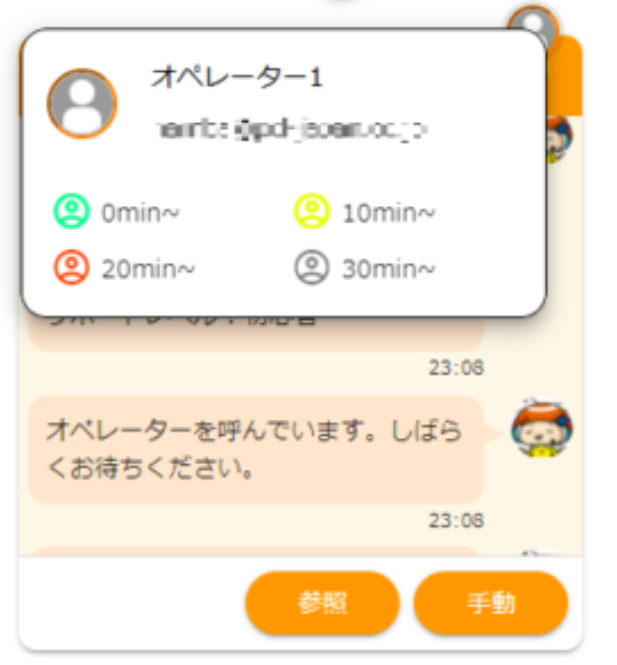 他のオペレーターが対応中の場合は、チャットウィンドウの右上のアイコンをクリックすると、誰がどのぐらいの時間対応しているか確認できます。