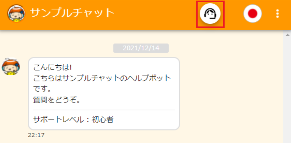 チャット利用者は、チャット画面の右上のオペレーターアイコンをクリックすると、オペレーターを呼び出せます。