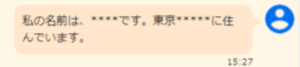 チャットで質問するときに、個人情報を入力してメッセージ送信しても、チャット上の画面や管理画面のチャット履歴から見れないようにマスク化することができます。