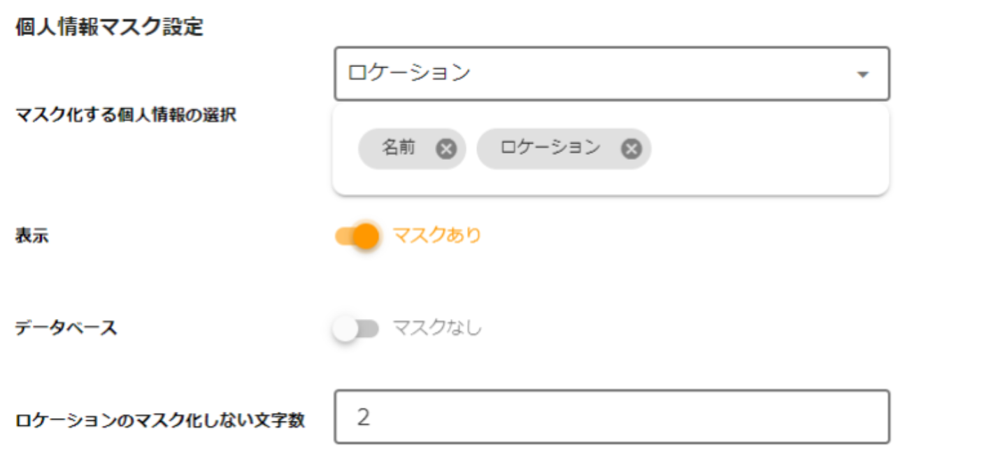 ロケーションを選択すると、マスク化しない文字数を設定できます。 - 画面右上の「保存」をクリックします。