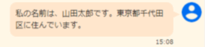 私の名前は、山田太郎です。東京都千代田区に住んでいます。