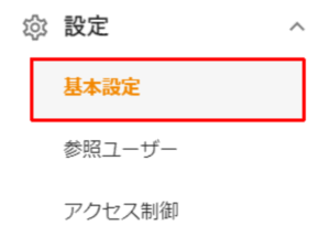 - 左側のメニューから、「設定」→「基本設定」→「チャット設定」をクリックします。