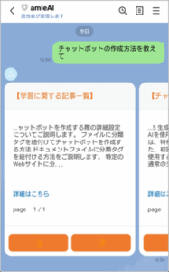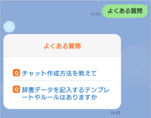 LINE連携をすると、LINE上のチャットにて設定した分類タグやよくある質問を選択して質問することができます。