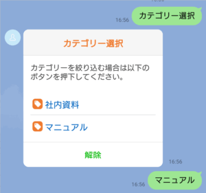 ・「カテゴリー選択」をタップすると、対象チャットボットで設定をした分類タグの選択ができます。