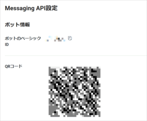 - LINE Developerの「Messaging API設定」タブにあるQRコードをスマートフォン等で読み込みます。