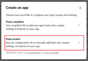 - 「Create an app」画面にて、「From scratch」をクリックします。