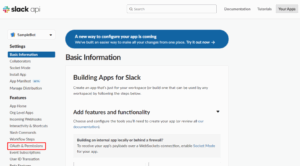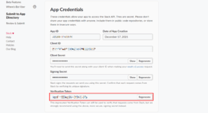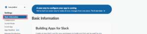 - 左側のメニューの「Basic Information」をクリックし、「App Credentials」内の「Verification Token」に記載されている内容をコピーし、メモ帳などに控えておきます。