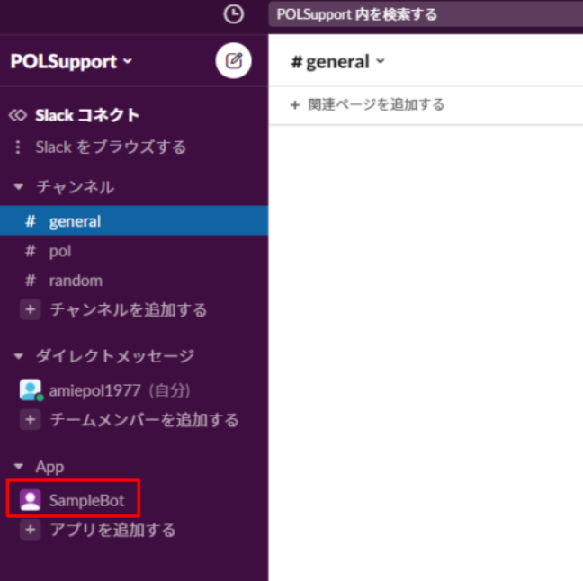 - 「SNS連携」にて、「Slack」が表示されていることを確認します。
