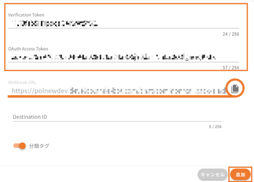 1.分類タグを設定していない場合または分類タグを「slack」で使用しない場合はトグルを「OFF」に