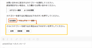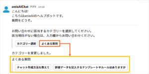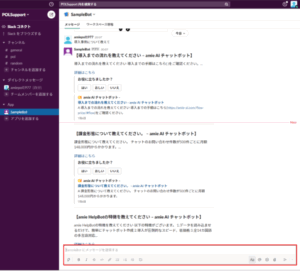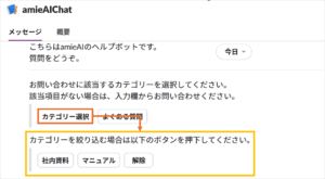 画面下部にて、メッセージを送信すると、質問に対する回答が表示されます。
