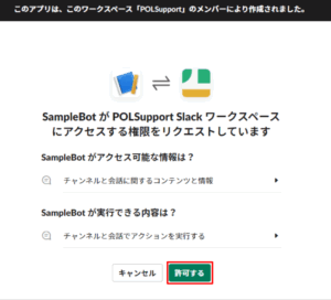 - アクセス権限リクエスト画面が表示されるので、内容を確認後、「許可する」をクリックします。