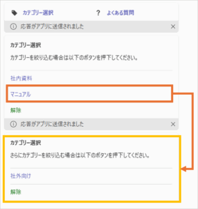 一度質問を送ると、「カテゴリー選択」というボタンが表示され、分類タグを使用できるようになります。
