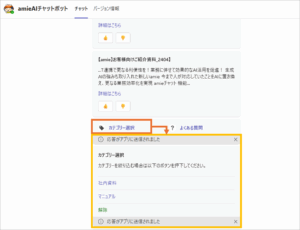 画面下部にて、メッセージを送信すると、質問に対する回答が表示されます。