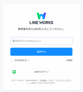 https://line.works.com/line-works - 「管理者画面」をクリックしてLINE WORKS Adminにアクセスします。
