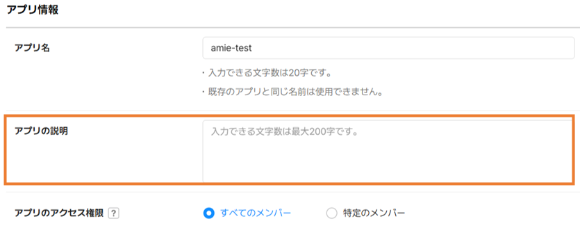 - 「アプリ情報画面」で「アプリの説明」を入力します。