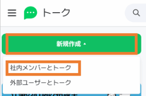 - 「新規作成」を選択し、「社内メンバーとトーク」をクリックします。