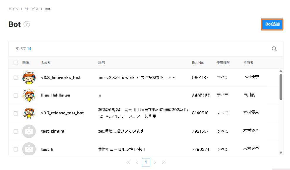 - 「サービス」>「Bot」をクリックして、Bot設定画面を表示します。