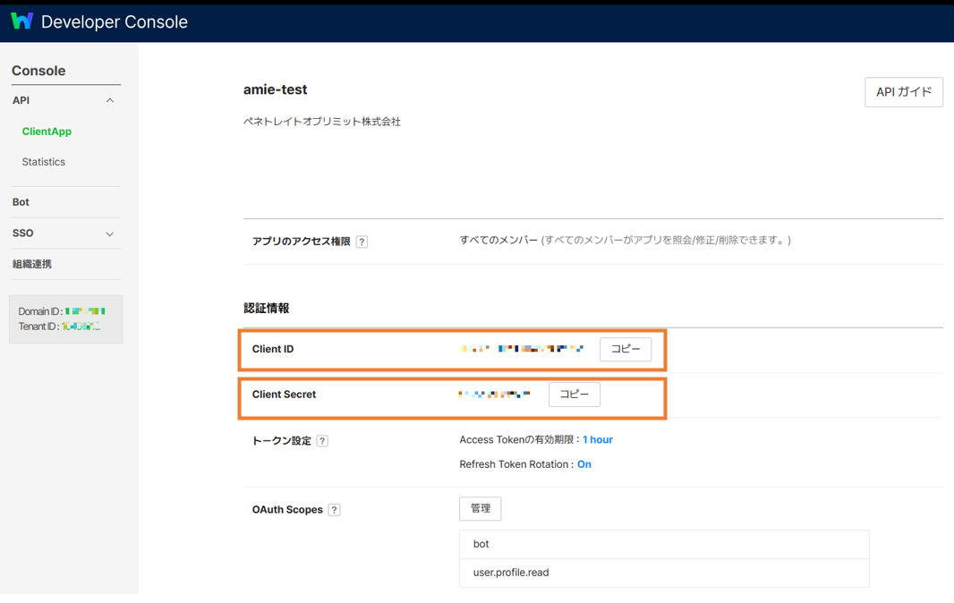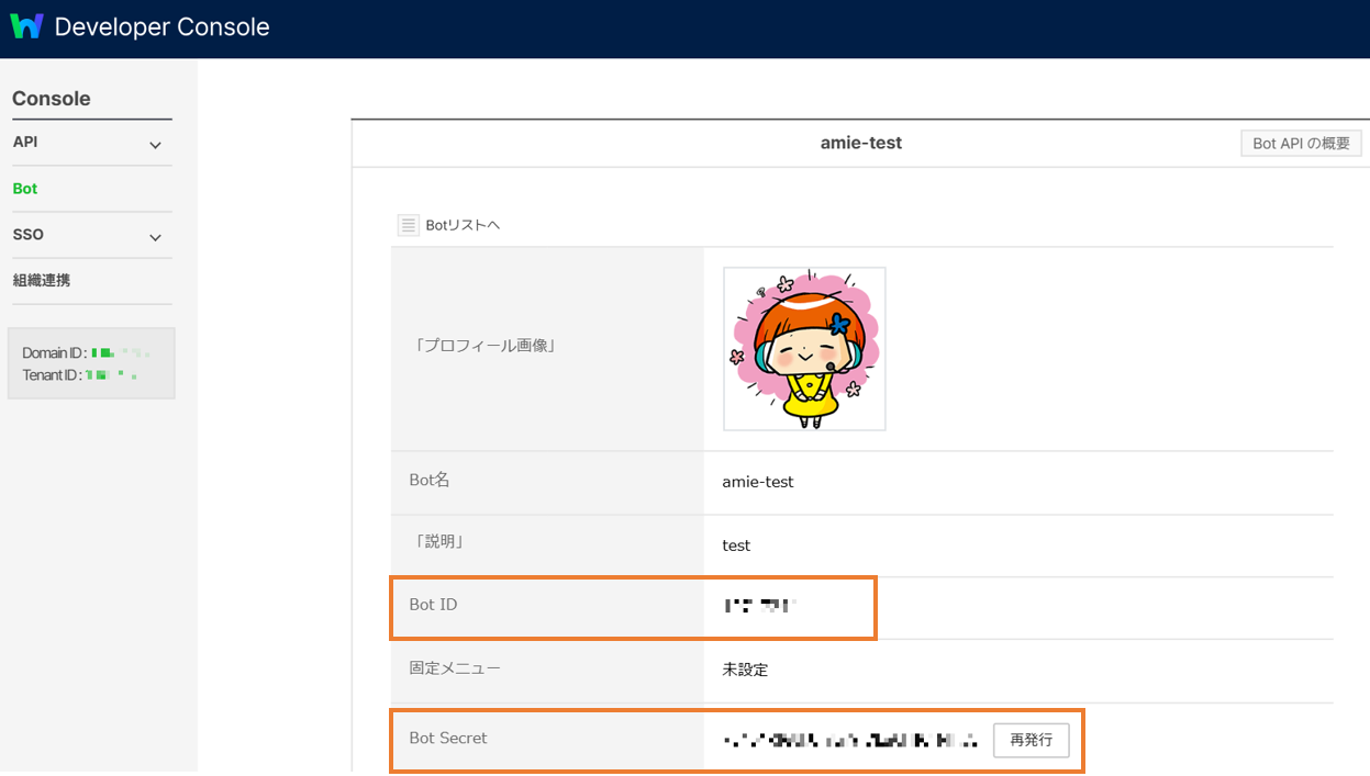 ※Bot ID、Bot Secretに関しては、以下をご確認ください。