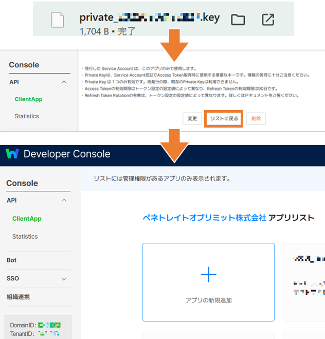 (1)https://developers.worksmobile.com/jp/?lang=jaにログインします。