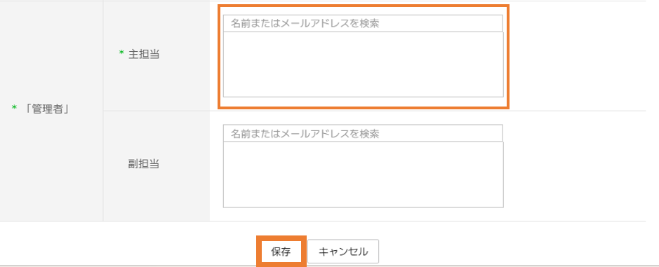 - 「管理者」には、「主担当」を入力します。「副担任」は任意で入力し、「保存」をクリックします。