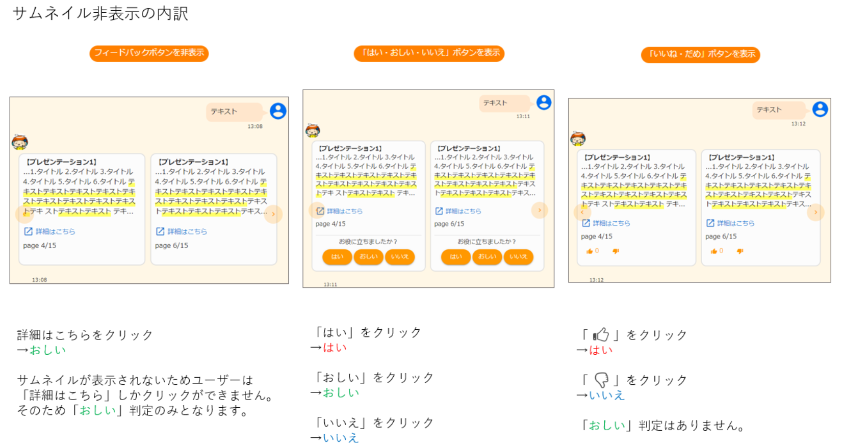 フィードバック機能を「非表示」に設定したときには、「いいえ」の判定はありません。