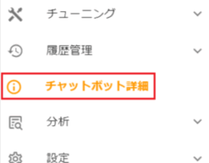「チャットボット詳細」から学習履歴を追い、チャットボットを過去のデータに戻すことができます。