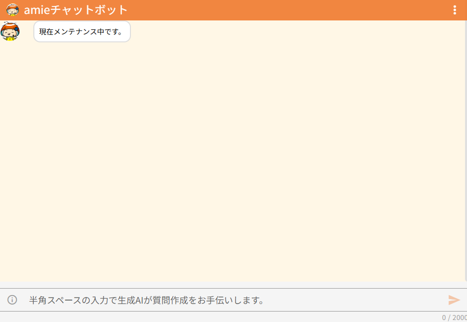 契約プランごとの問い合わせ件数を超えると、チャット画面に接続時に「メンテナンス中です」と表示されてチャットを利用できなくなります。