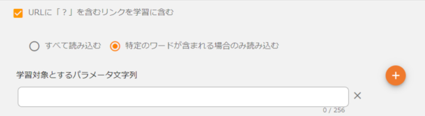 ※URLの「?」以降で特定の文字列を含むものだけを学習させたい場合は、「特定のワードが含まれる場合のみ読み込む」を選択し、入力欄に文字列を入れます。