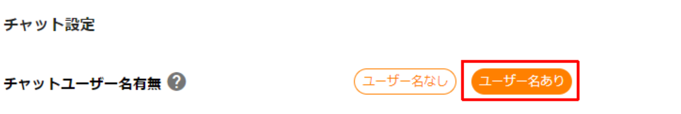 - 「チャット設定」→「チャットユーザー名有無」欄にて、「ユーザー名あり」をクリックします。