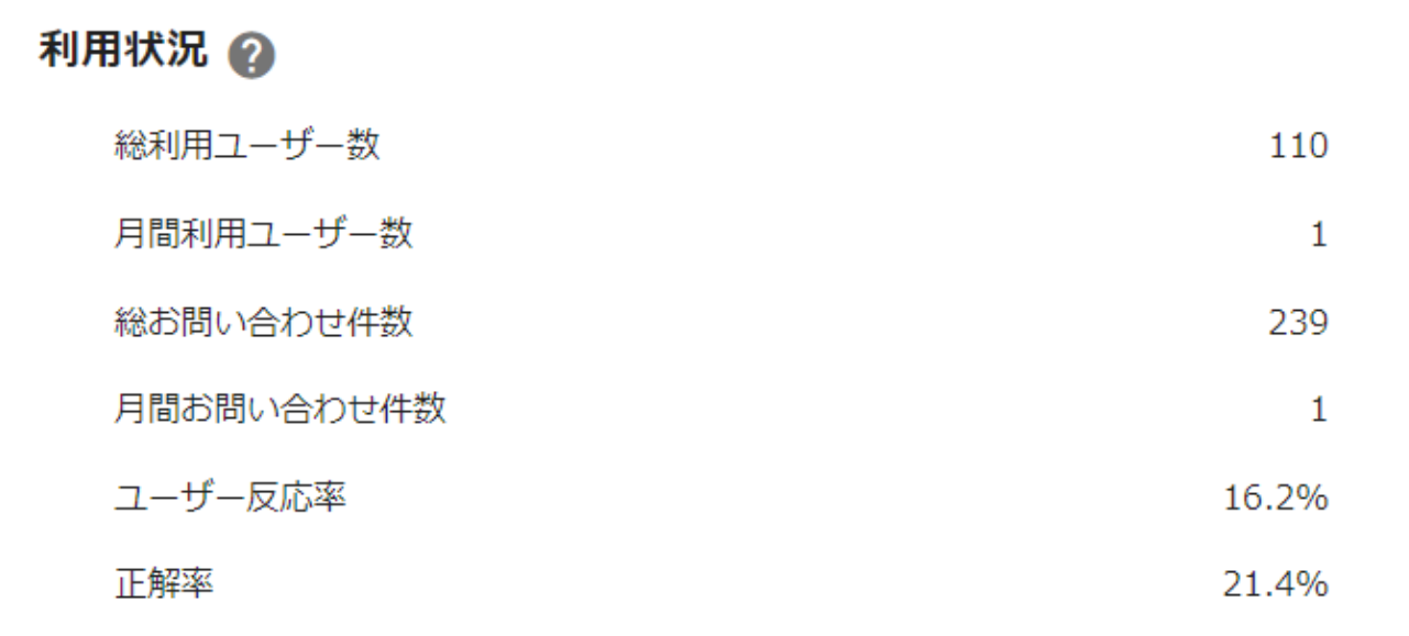 チャットボット内の全学習履歴の月間お問い合わせ件数を表示します。 - ユーザー反応率