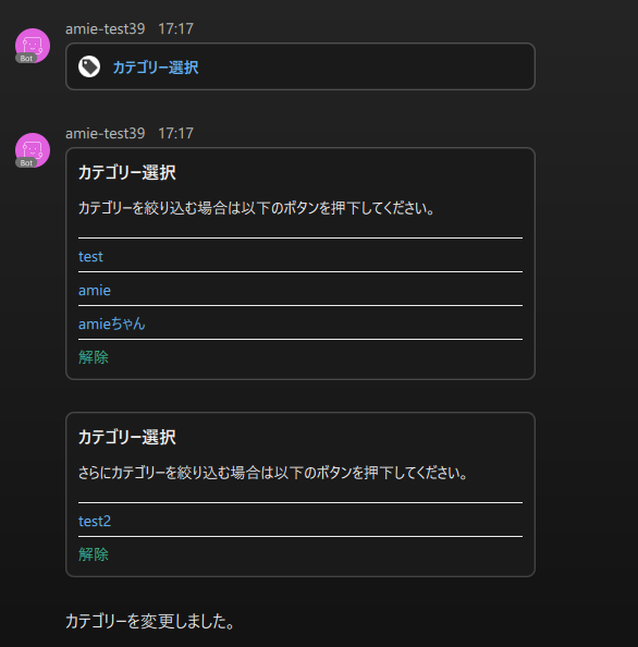 botを追加して、チャットボットに話しかけた画面例
