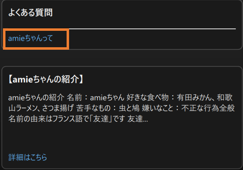 「よくある質問」を選択すると設定済みの質問が表示され、該当する質問をクリックすると