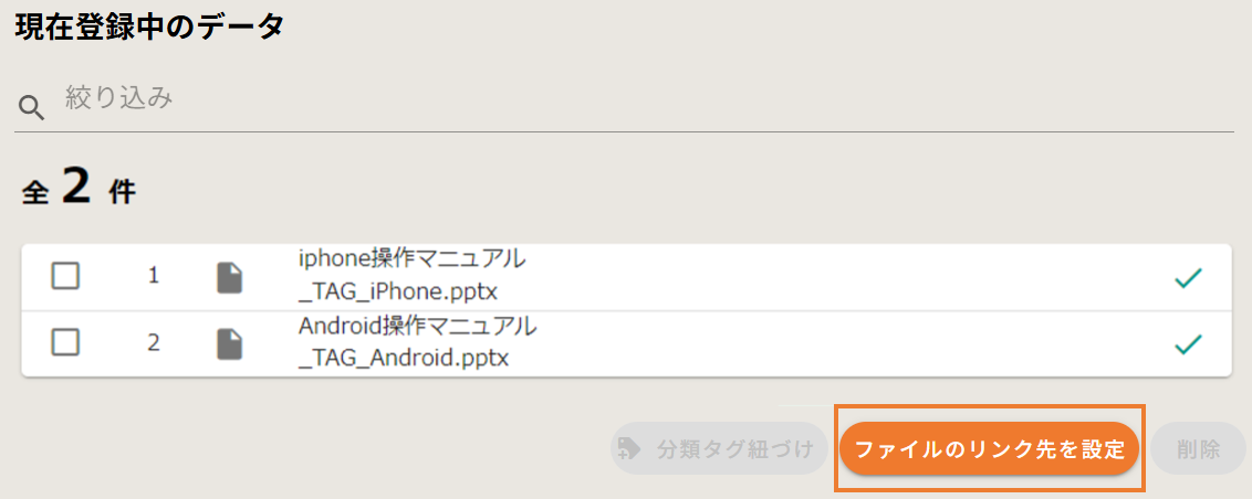 ファイルのリンク先は、CSVファイルを使用して一括で登録することが可能です。