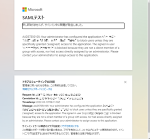 SAML認証を設定したチャット画面にアクセスする際に、「Microsoftアカウントでサインイン」 をクリックすると、「申し訳ありませんが、サインイン中に問題が発生しました。」と表示され、チャット画面にアクセスできない場合があります。