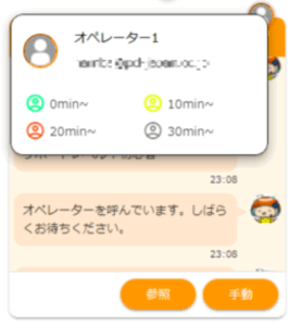 チャットウィンドウの右上に対応中のオペレーターが表示されるの