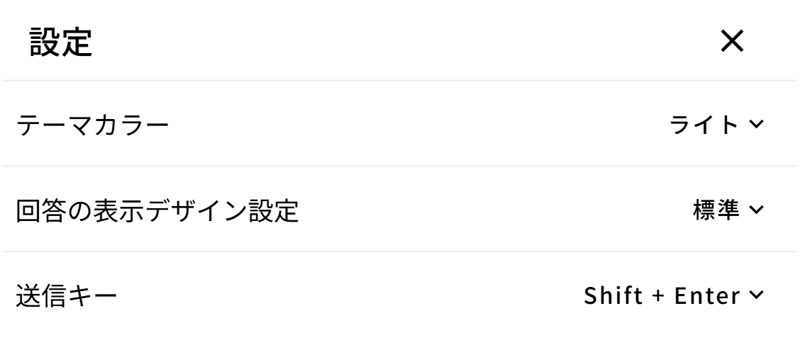 送信キー:amieに質問する際の送信キーをEnter、Shift+Enter から選択できます。