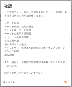 「生成AIチャットのみ」を押下したタイミングで以下の確認ダイアログが表示されます。