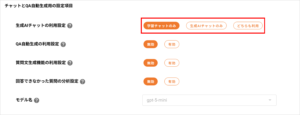 ※「生成AIチャットのみ」の場合、設定できる項目が少ないため通常のチャット作成とは表示が少し異なります。