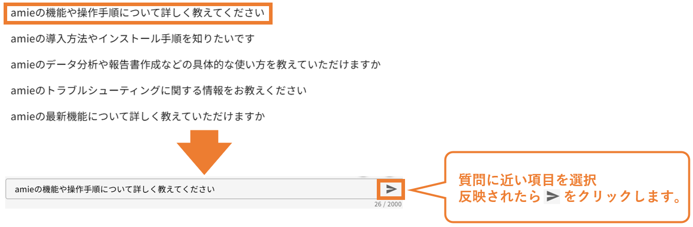 3.質問の生成結果から質問事項に近い項目を選択し、送信ボタンをクリックします。