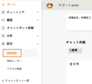 該当チャットが開けたら、サイドメニューから基本設定を開きます。