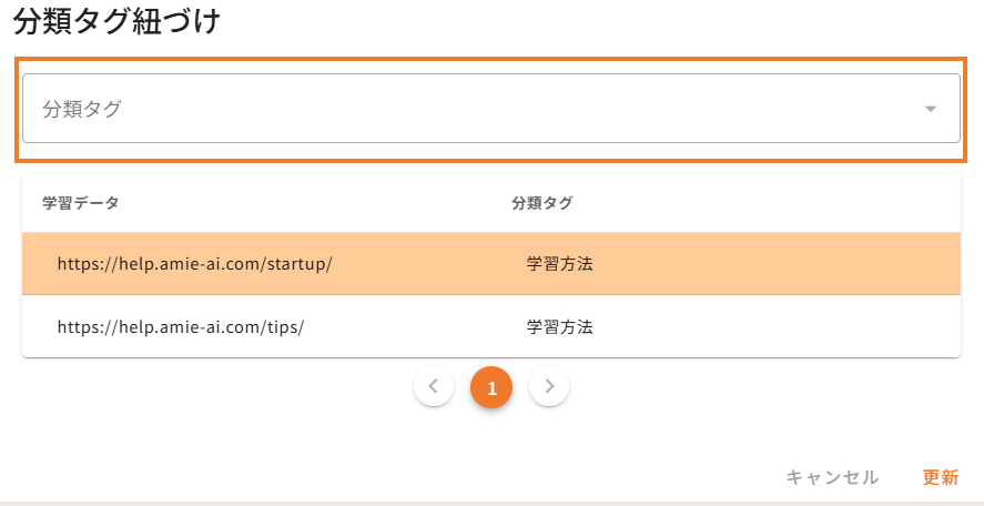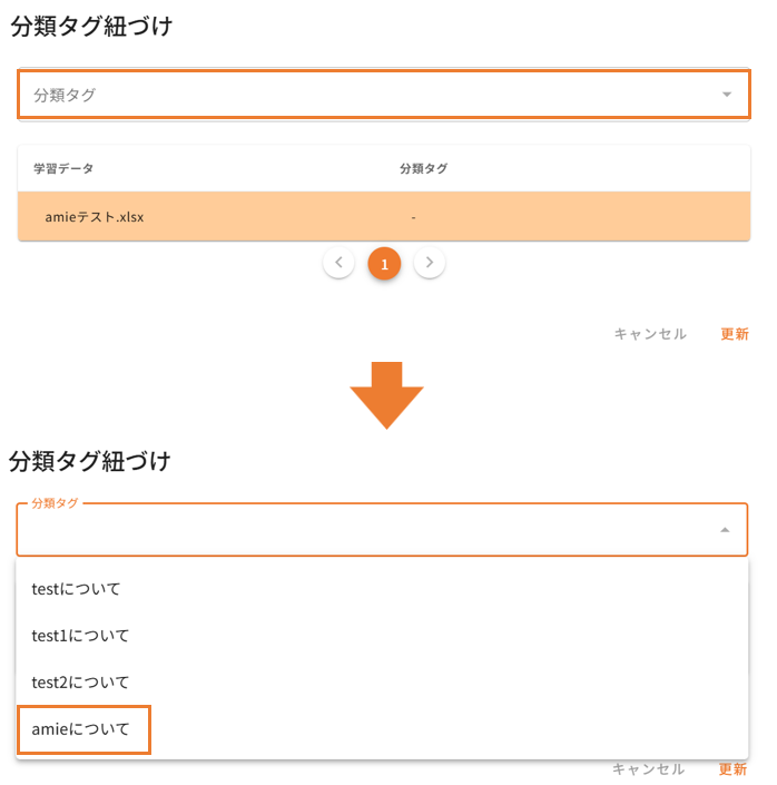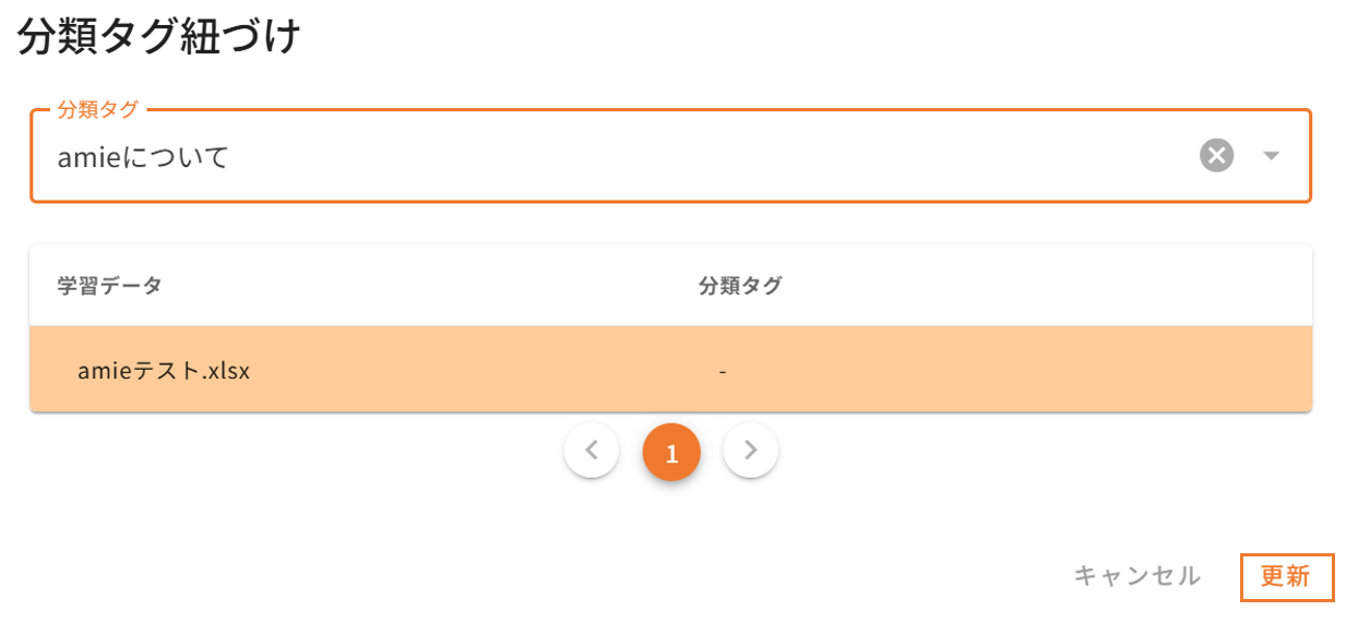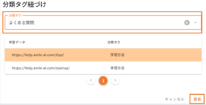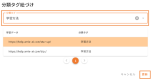 「分類タグの紐づけ」とは、学習データ登録時(追加学習/再学習)に分類タグが登録ができる機能となります。